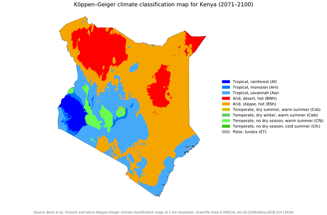 Despite this, it will become increasingly difficult for Kenya’s best-known macrofauna, such as lions, leopards and elephants to survive as their habitat shrinks between the forest and the dry zone with warming temperatures. Furthermore, Kenya’s already precarious agriculture industry, suffering already from periodic droughts and inconsistent production, will suffer as well. Lake Turkana, in the northwestern part of the country near Ethiopia, is in danger of drying up as that portion of Africa is expected to warm much more quickly than surrounding areas in the coming century.