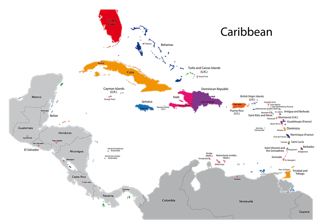 Physical map of the Caribbean.